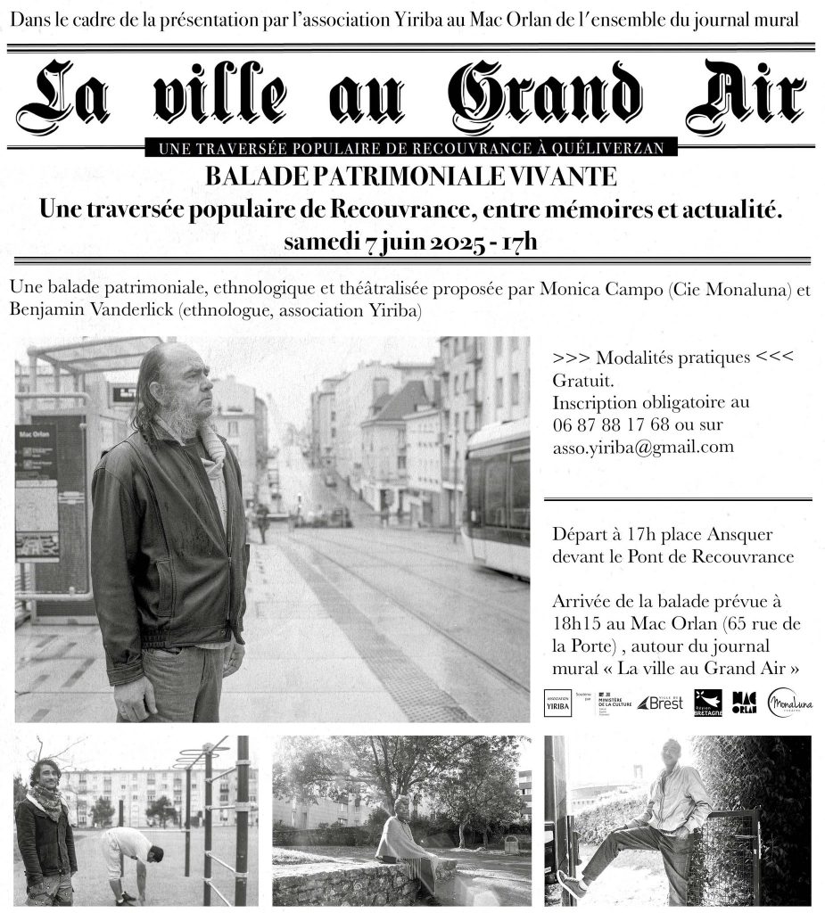 Le photographe et ethnologue Benjamin Vanderlick raconte une traversée populaire de Recouvrance à Quéliverzan dans l’exposition « La ville au grand air »,  produite par l’association Yiriba et en partenariat avec la Compagnie Monaluna. Une balade théâtralisée par Monica Campo Hurtado.
